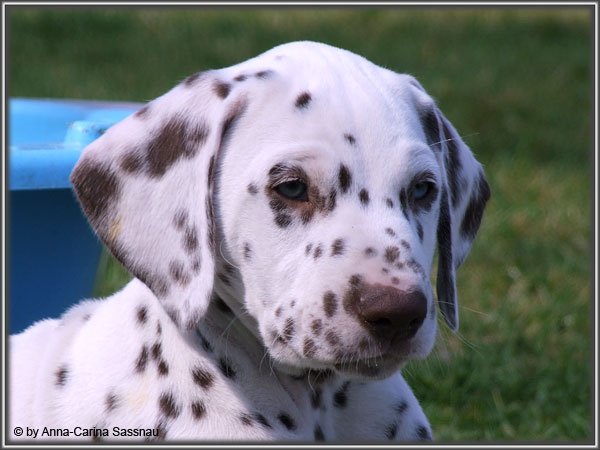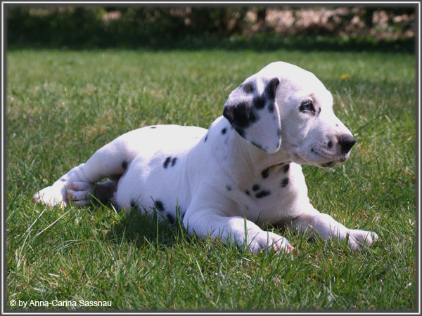 Nun ist auch die 8. und letzte Woche mit allen Welpen gemeinsam vorbei. Unsere Welpen wurden geimpft, gechippt und AEP untersucht. Zu unserer Freude: ALLE WELPEN SIND BEIDSEITIG HÖREND!! Anfang der 9. Woche fand dann die Wurfabnahme statt und gleich danach zogen auch schon die ersten Welpen aus. "Brilliant Diamond" machte den Anfang und hat 12 Stunden Autofahrt gut überstanden. Sie ist gesund und munter im neuen Heim (Österreich) angekommen. Nach und nach sind alle Welpen ausgezogen und haben ein tolles Zuhause gefunden!