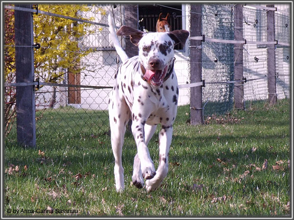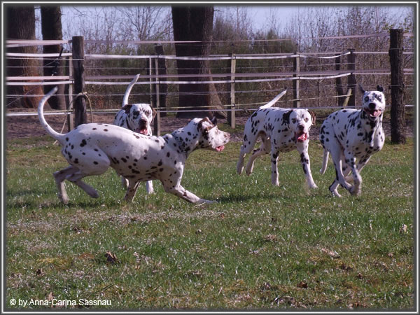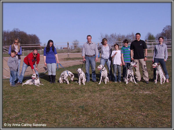 Am 10.04.2011 fand nun endlich unser lang ersehntes Welpentreffen statt. Wir hatten alle einen sehr schönen Nachmittag und auch das Wetter war einfach nur SUPER!! Aus unserem A-Wurf waren 7 "Welpen" mit dabei: "After Eight of the Smiling Spots", "All Right of the Smiling Spots", "Angel of Love of the Smiling Spots", "All my Dreams of the Smiling Spots", "Amazing Princess of the Smiling Spots", "Anything Stay of the Smiling Spots" und "After Midnight of the Smiling Spots". "Anything Stay" brachte noch seinen Kumpel "Jasper von Reinhold's Hüsung" mit und unsere 4 waren natürlich auch mit dabei. Insgesamt waren es 12 Hunde und 24 Zweibeiner. Die Fotos sind an diesem Tag etwas "zu kurz" gekommen, aber ich habe nun versucht die Besten herauszusuchen. Es war mit Sicherheit nicht das letzte Treffen und beim Nächsten werde ich mich dann mal etwas mehr auf die Fotos konzentrieren! ;-)