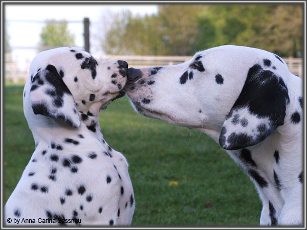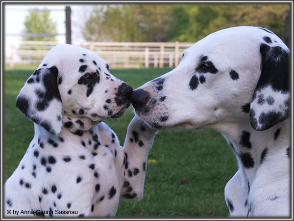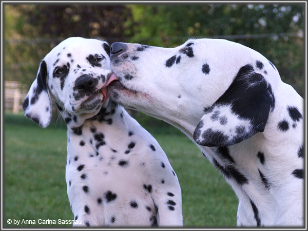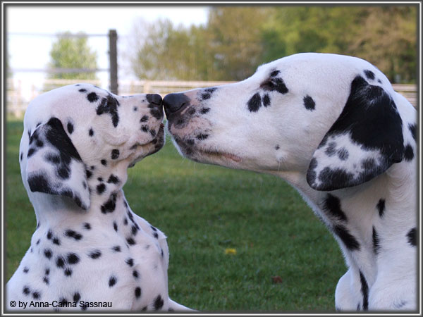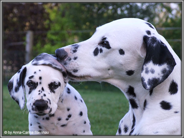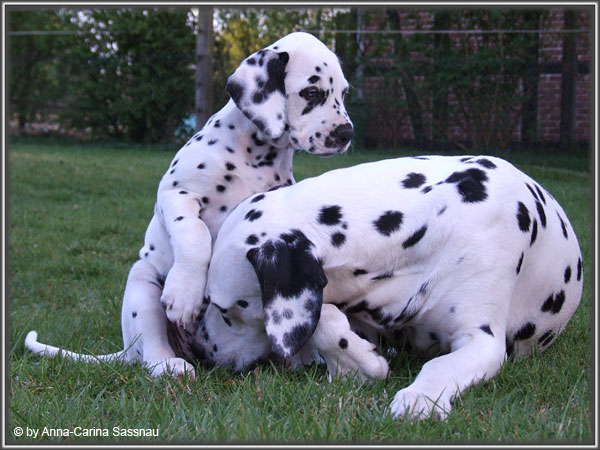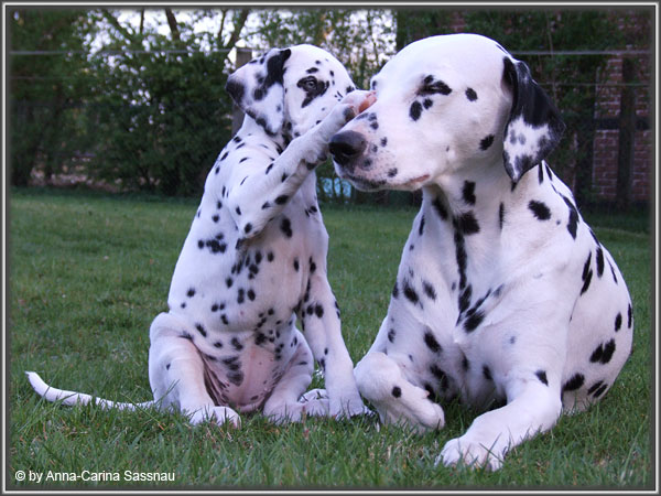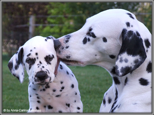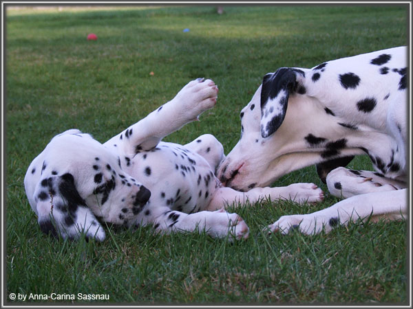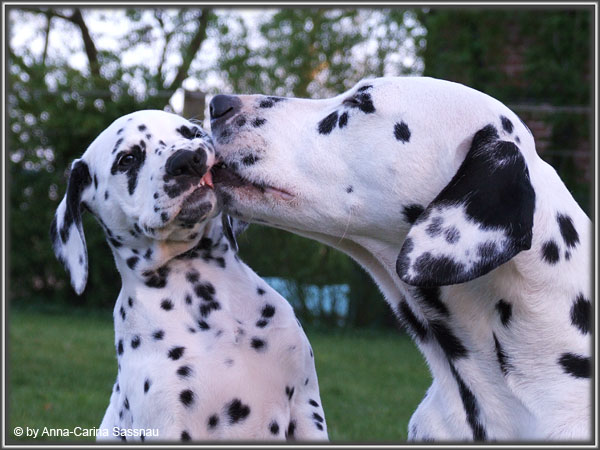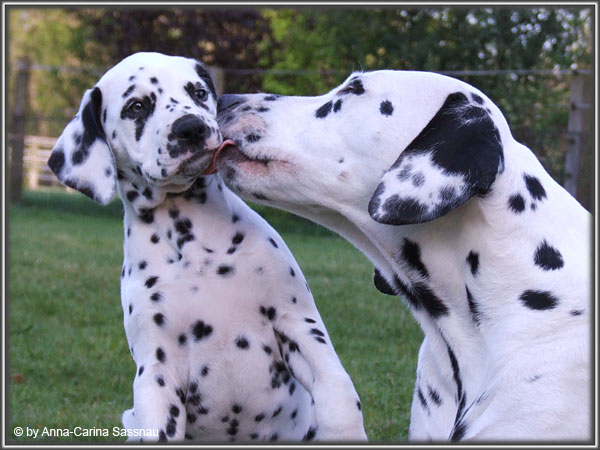 "Alaska" hatte 2 Würfe mit 19 wunderbaren Welpen. Bei der Pflege, Aufzucht und Erziehung hat "Alaska" jeden Tag auf's Neue ihr bestmögliches gegeben und sich sehr liebevoll um jeden einzelnen Welpen gekümmert. In dieser Fotogalerie kann ich natürlich nur einige Ausschnitte davon zeigen. Auf den Foto's ist "Alaska" mit ihrer Tochter "Black Smarties" (im Alter von 8 Wochen) zu sehen.
