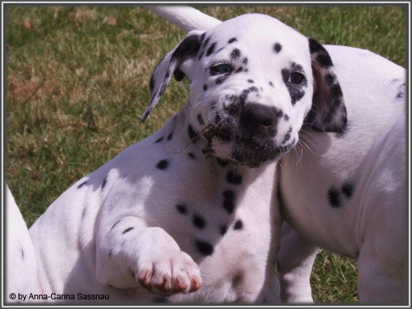 Auch die 7. Woche ist wieder wie im Fluge vergangen. Das Wetter ließ sehr zu Wünschen übrig und wir haben für die Fotos die trockenen Momente genutzt. Aber nächste Woche soll es ja hoffentlich besser werden. Unsere Welpen haben mittlerweile schon ziemlich gute Gewichte und sind topfit. Diese Woche gab es die 3. Wurmkur und nächste Woche steht dann die AEP (Hörtest), die erste Impfung und die Wurfabnahme auf dem Programm. Wir werden die nächste Woche noch einmal richtig genießen bevor uns auch schon die ersten Welpen wieder verlassen.