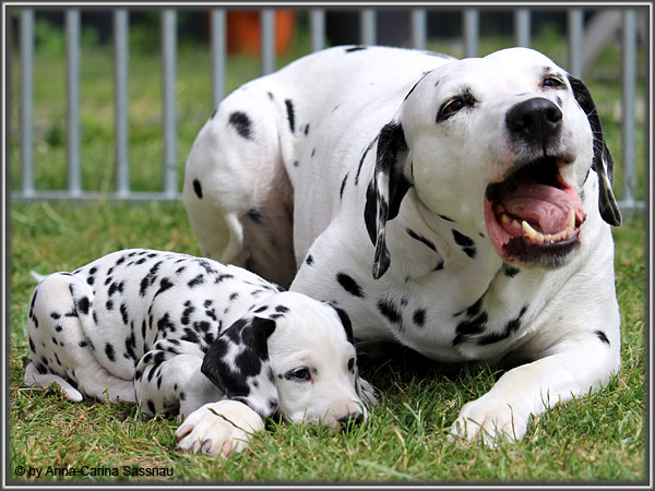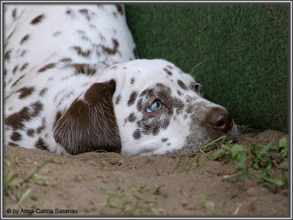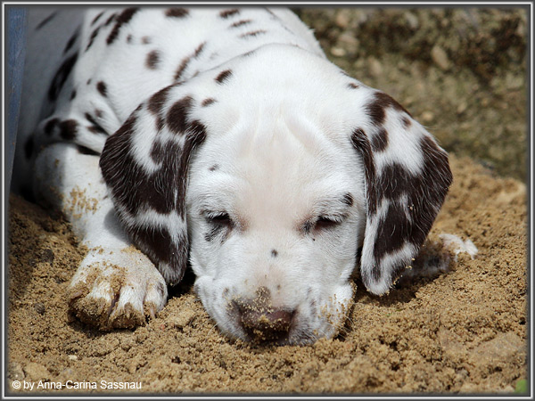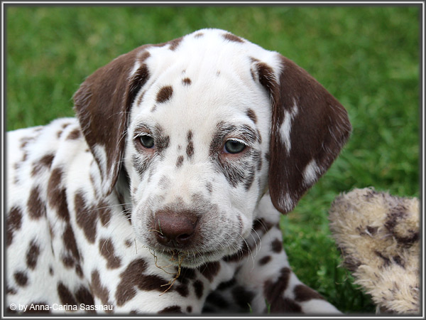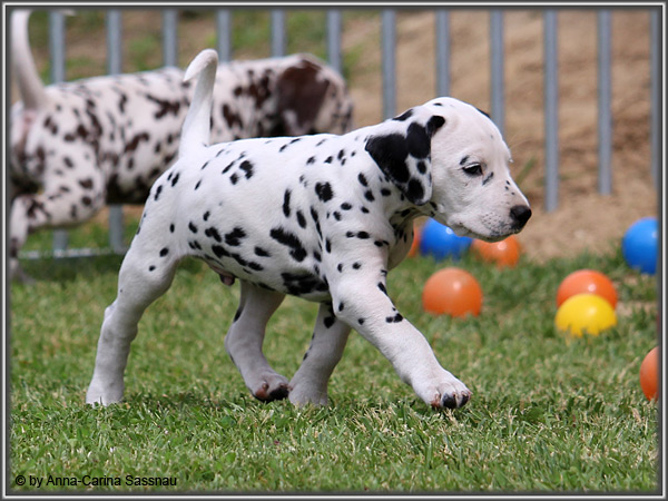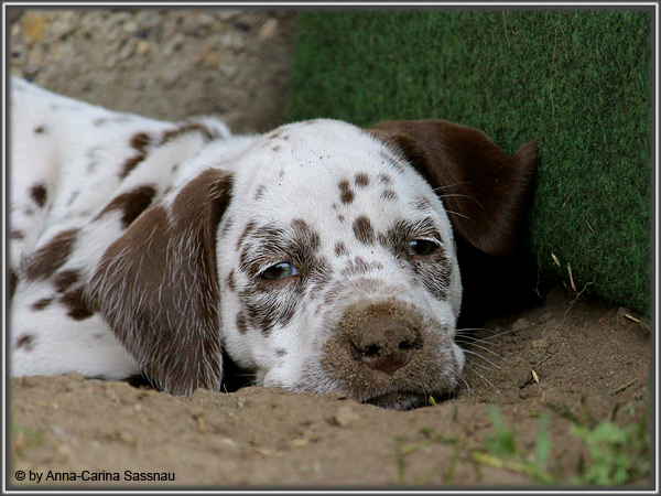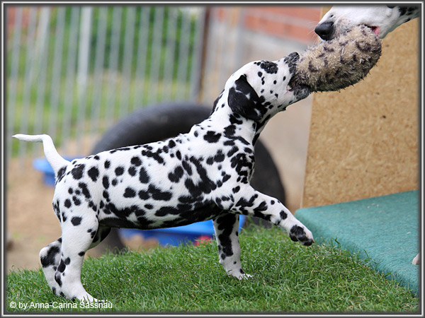 In der 7. Woche stand für unsere D-chen ein einzigartiger Tag auf dem Programm. Wie auch unser C-Wurf durften die Welpen Fernseh-Luft schnuppern. Gemeinsam ging es natürlich mit Mama "Hollywood" & "Alaska" nach Hamburg. Die gut 2-stündige Autofahrt wurde relativ gelassen hingenommen. Gerade angekommen mussten die Kleinen zusammen mit Mama zur Probe auf die Bühne. "Alaska" durfte es sich hinter den Kulissen auf dem Sofa gemütlich machen ;-). Den ganzen Tag hatten wir ohne Pause Besuch von groß und klein in unserer Garderobe; natürlich wegen den Welpen. Abends ging es dann mit allem drum und dran auf die Bühne zur Aufzeichnung der Sendung. Wie schon bei der Probe fanden die Welpen die Deko um einiges interessanter als alles andere. Völlig selbstverständlich ging jeder seinen Weg... entgegengesetzt der Kameras ;-) "Deluxe Edition" durfte sogar auf dem Arm von Jörg Pilawa Platz nehmen. Ein aufregender Tag für alle beteiligten; sodass die Rückfahrt späten Abend ganz entspannt war mit den müden Film-Stars. Zuhause angekommen waren sie dann aber doch sehr glücklich ihren Garten wieder zu haben :-)