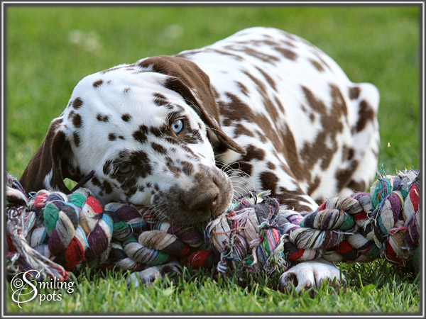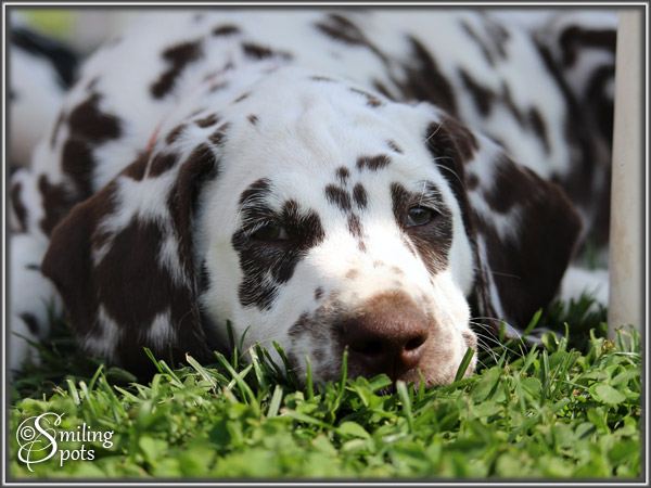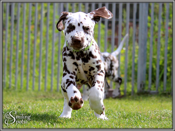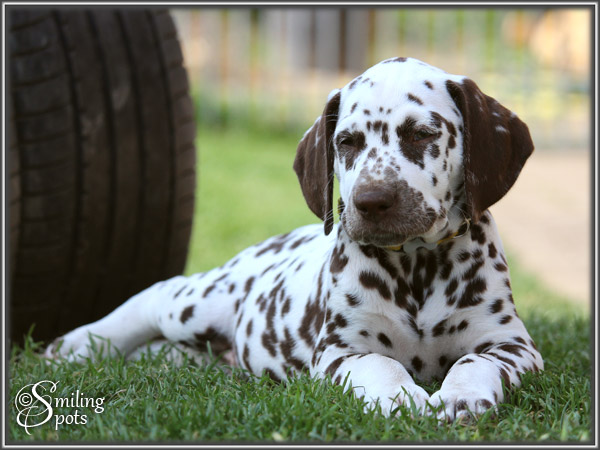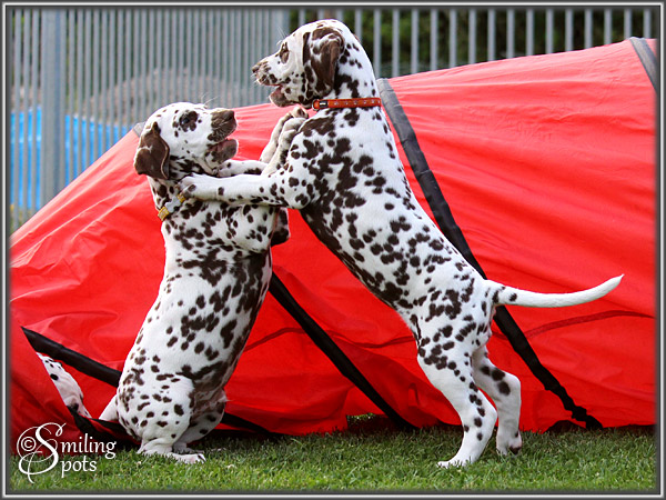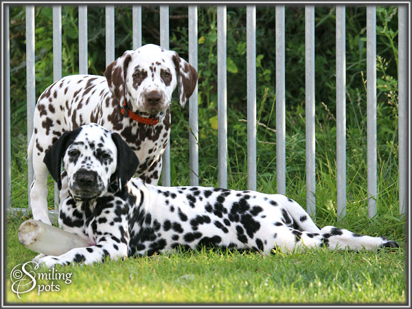 Hallo Leute! Wir sind "Enchanting Princess" & "Evening Sun". Dies war unsere letzte gemeinsame Woche ... Aber die haben wir natürlich voll genutzt! So langsam kommen wir nämlich auf richtig gute Ideen (Frauchen sagt "Blödsinn" dazu), aber uns macht das sehr viel Spaß und wir sind schließlich von selbst drauf gekommen - also: gute Ideen! Mama spielt auch viel mit uns, das finden wir alle super. Wenn sie uns dann zwischendurch erzieht, naja.... das kann sie eigentlich lassen - total unnötig. Wir sind nämlich richtig liebe Welpen. Frauchen ist auch äußerst zufrieden mit unserer bisherigen Entwicklung. Ansonsten gibt's nicht so viel zu erzählen. Wir Spielen, Schlafen, Fressen und haben eben ab und zu "gute Ideen". Die müssen wir dann in Zukunft alleine bei unseren neuen Besitzern ausprobieren, aber da fällt uns bestimmt auch alleine etwas ein, das Spaß macht. "Schwarzohr" & "Mini Snoopy" haben den Anfang gemacht und sind als erstes ausgezogen. Und in den nächsten 2 Wochen gehen wir dann nach und nach alle neue Wege. Bei Frauchen im Herzen bleiben wir aber natürlich für immer - jeder von uns auf seine ganz besondere Art & Weise!!
